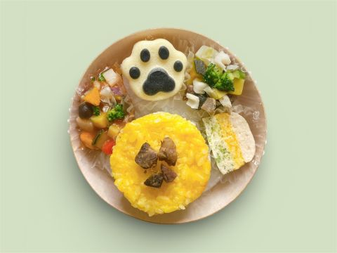 かぼちゃとブロッコリーの3色ごはん/阿波尾鶏のテリーヌ/国産野菜のごろごろジュレ風(ペロッとワン(鹿肉・鯛)/グルテンフリー肉球ドーナツ