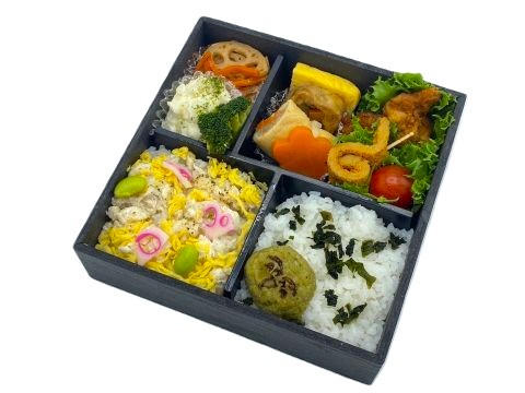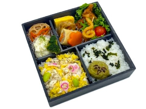 当店自慢の柚子香る特製鯛チラシにフィッシュカツやすだち風味の唐揚など徳島の味が詰まったお弁当です。